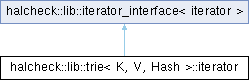 | iterator (typename std::unordered_map< K, trie, Hash >::const_iterator base) | |